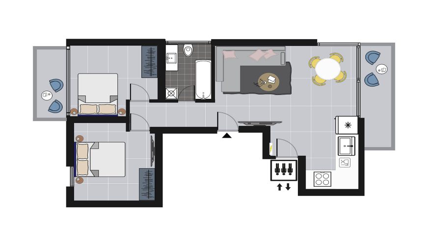 With its two bedrooms and an open sofa in the living room, this apartment is ideal for a small family of 6 or surfers longing for Tel Aviv’s white-sand beaches.